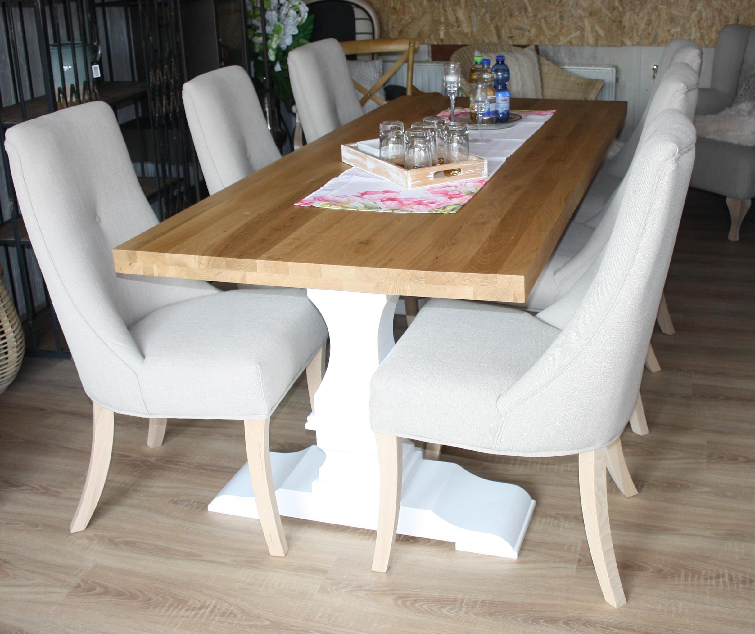 Großer, repräsentativer Klostertisch im antiken Stil mit Eichen-Tischplatte. Eine imposante Erscheinung für den großzügigen Essbereich, für die Kanzlei, für den besonderen Gastraum und für andere repräsentative Umgebungen.