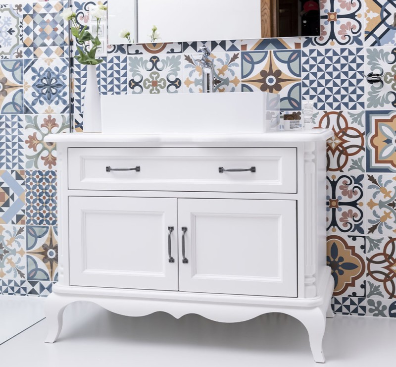 Dieser kleine Waschtisch vervollständigt unsere Chic-Kollektion der Badmöbel im antiken Stil. Neben dem antiken Stil steht hier die Funktionalität im Vordergrund. Der Waschtisch bietet ein Schrankfach und eine Schublade. Das Schrankfach hat zwei Türen. Die Türen sind mit hochwertigen Topf-Scharnieren mit Soft-Close-Funktion ausgestattet.