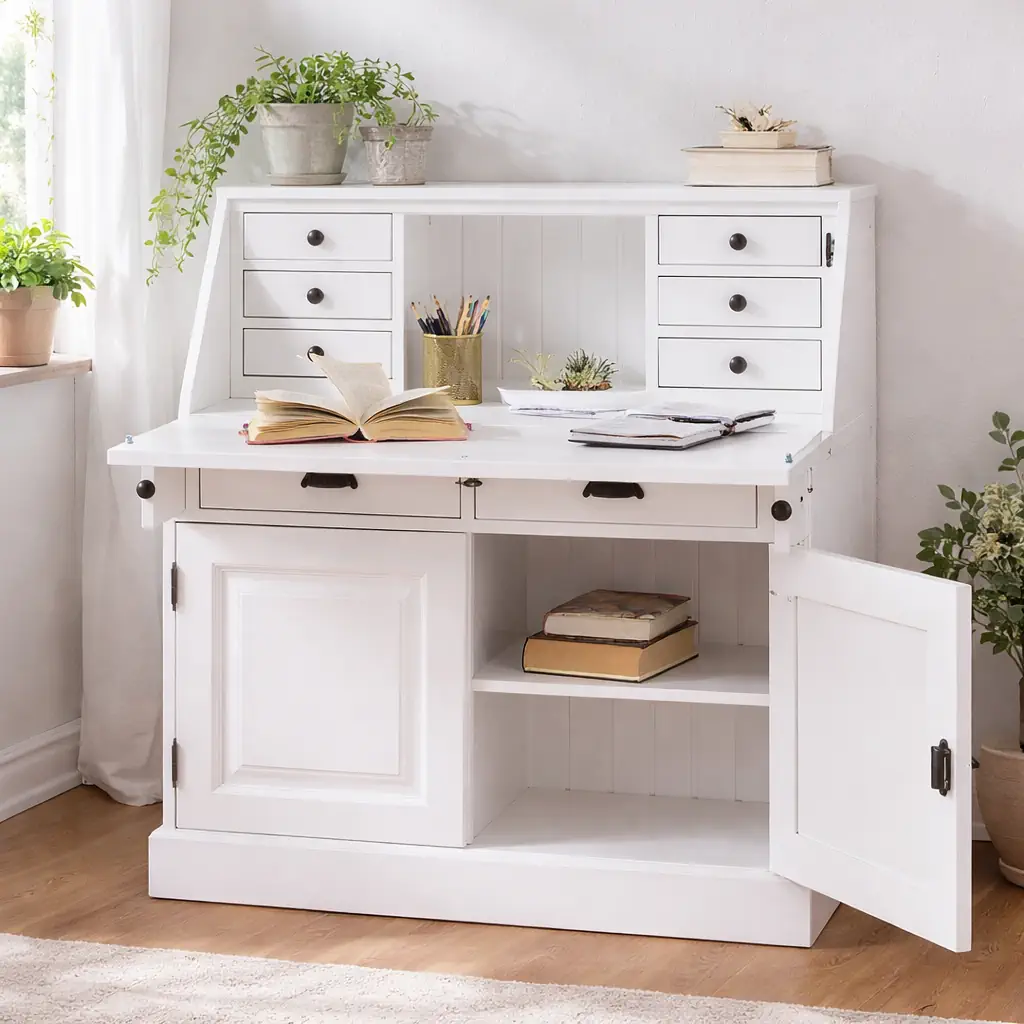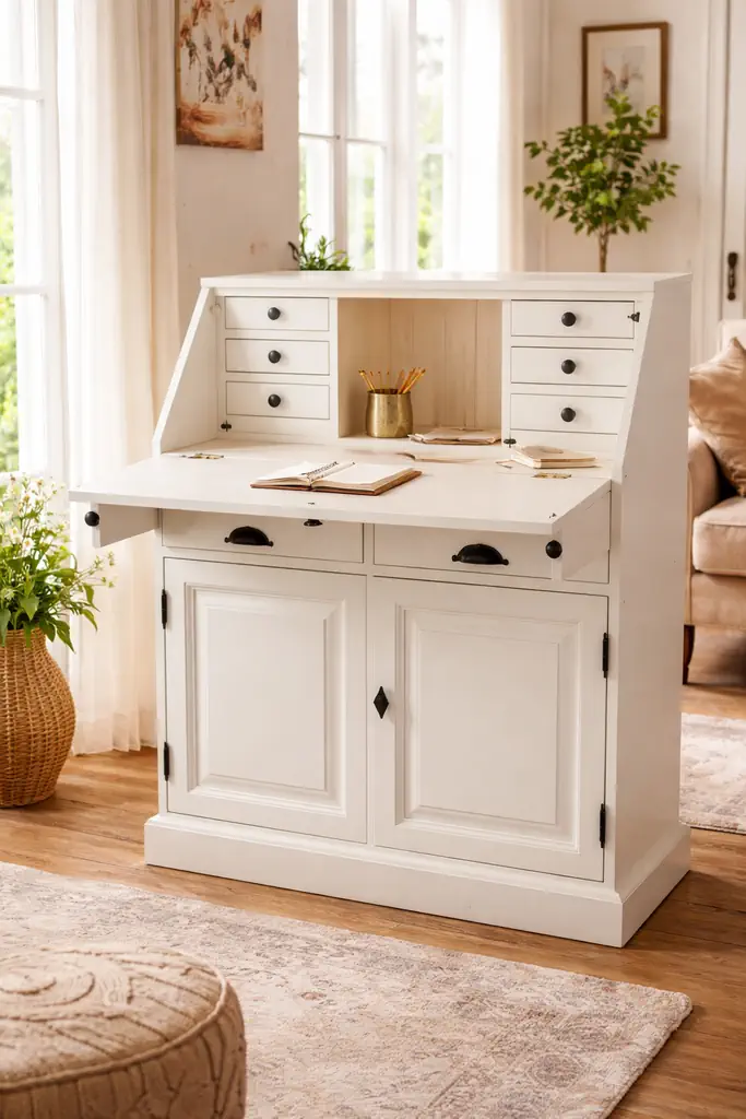 Großer Sekretär mit 2 Türen (1 Regalboden), darüber 2 Schübe,