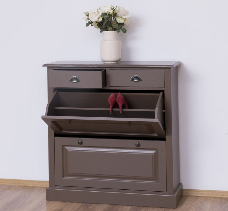 Einteiliger Schuhschrank , mit 2 Schuhkipper Fächer und 2 Schubladen, aus 100% Massivholz