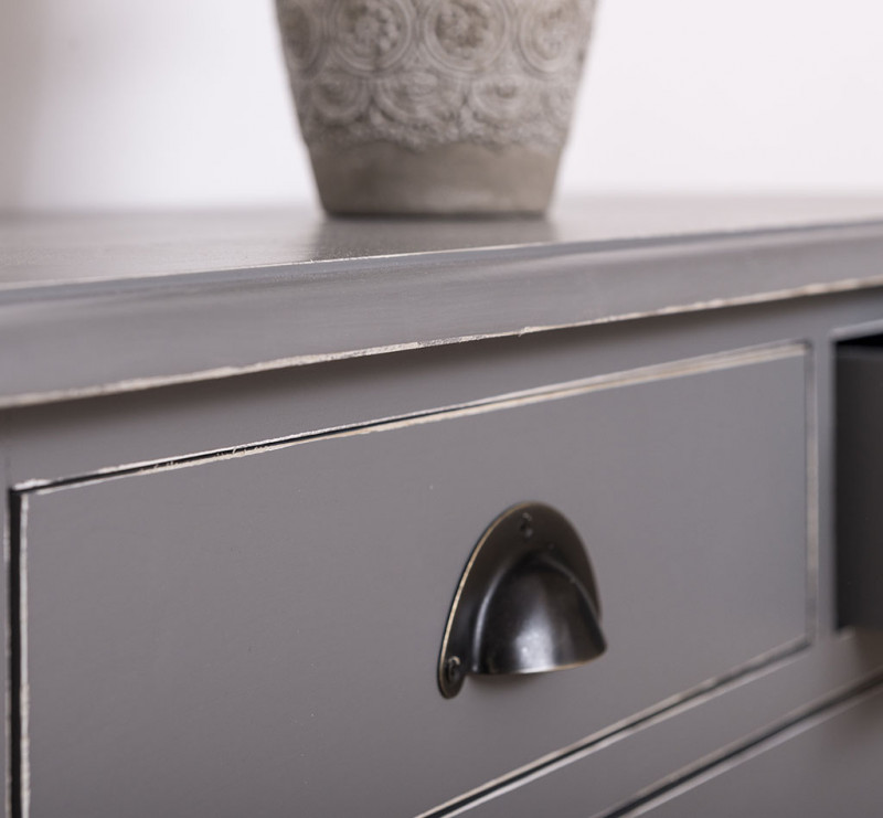 Der klassische Landhaus-Stil bedeutet auch: die Massivholz-Oberfläche ist rustikal ausgeführt und nicht furniert. Die Holzstruktur ist noch deutlich sichtbar und fühlbar, inklusive aller natürlichen „Fehler“. Speziell in Verbindung mit einer zusätzlichen Antikisierung ist das ein absoluter Trend-Stil. Bei unseren wasserbasierten Buntlacken können Risse an den Stoßkanten der Hölzer sichtbar werden. Die traditionelle Massivholz-Konstruktion garantiert eine besonders hohe Lebensdauer dieser Möbel.