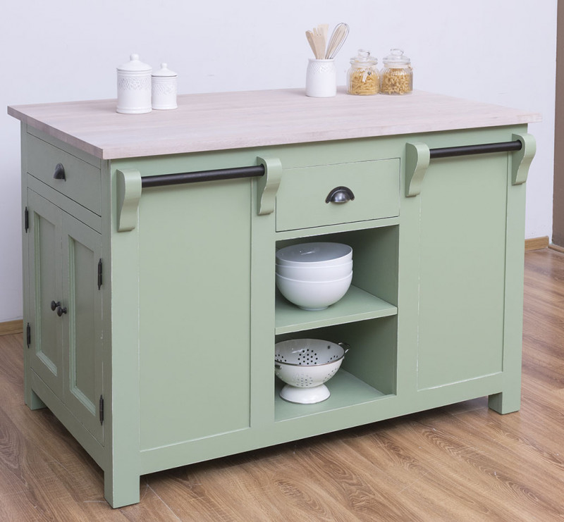 Wir haben Kücheninseln von 135 bis 180 cm Breite, verschiedenen Tiefen und mit Höhen von 80 und 90 cm in unserem Landhaus-Programm. Allen ist die rundum nutzbare Ausführung gemeinsam. Jede Kücheninsel kann auch ohne Deckplatte bestellt werden.