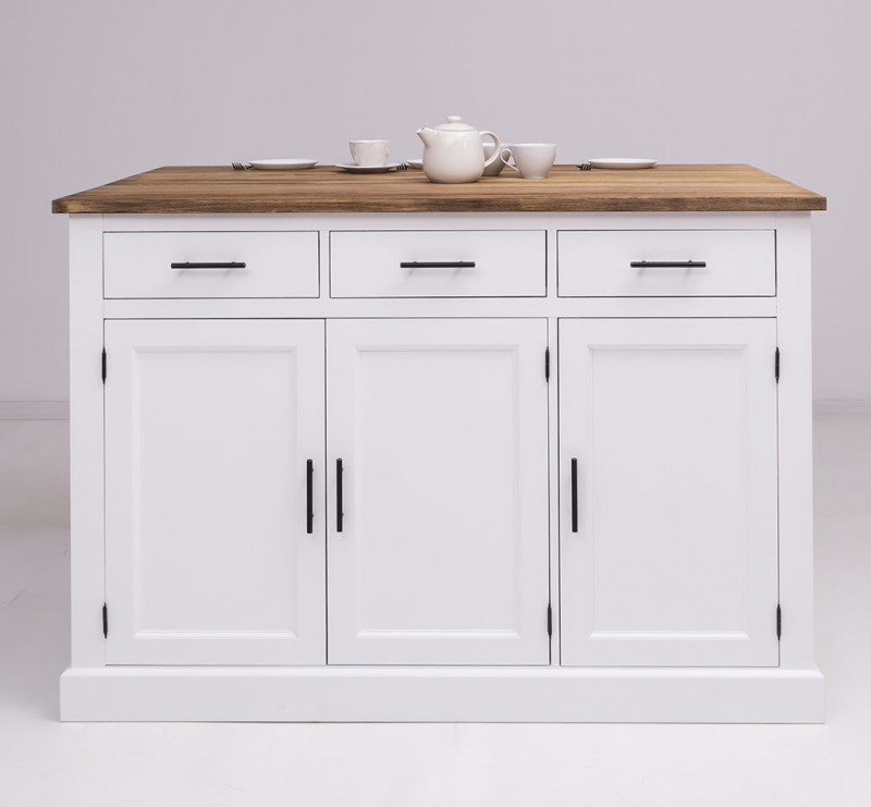 Wir haben Kücheninseln von 135 bis 180 cm Breite, verschiedenen Tiefen und mit Höhen von 80 und 90 cm in unserem Landhaus-Programm. Allen ist die rundum nutzbare Ausführung gemeinsam. Jede Kücheninsel kann auch ohne Deckplatte bestellt werden.