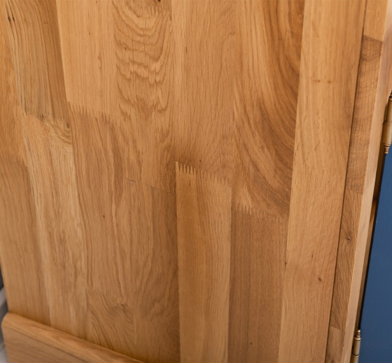 Dieser Küchenschrank ist ein echtes Schmuckstück im Landhaus-Stil – gefertigt aus 100 % massiver, europäischer Eiche. Bei uns wird dieses edle Material zudem mit handwerklicher Raffinesse verarbeitet: Durch den Mix aus Vollholz, Stab- und Parkettverleimung entstehen Möbelstücke, die nicht nur wunderschön aussehen, sondern auch äußerst stabil und langlebig sind.