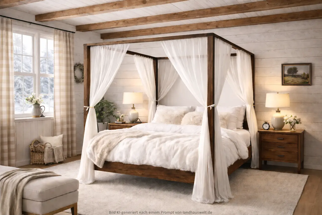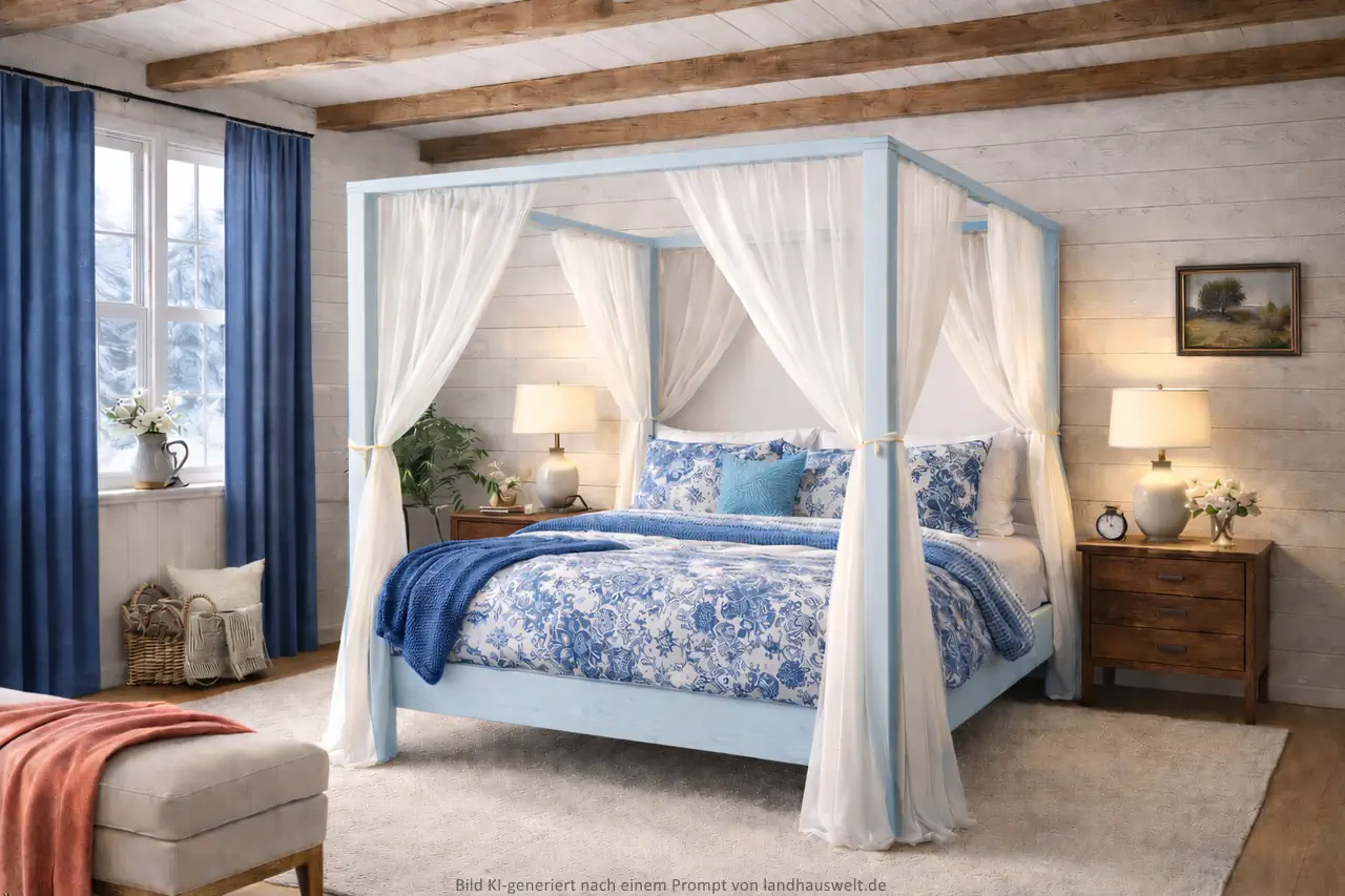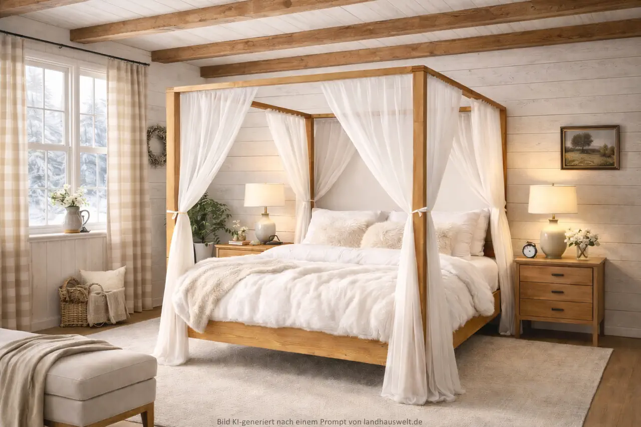 Himmelbett aus Massivholz im Landhausstil – zeitloses Baldachinbett für stilvolle Schlafzimmer