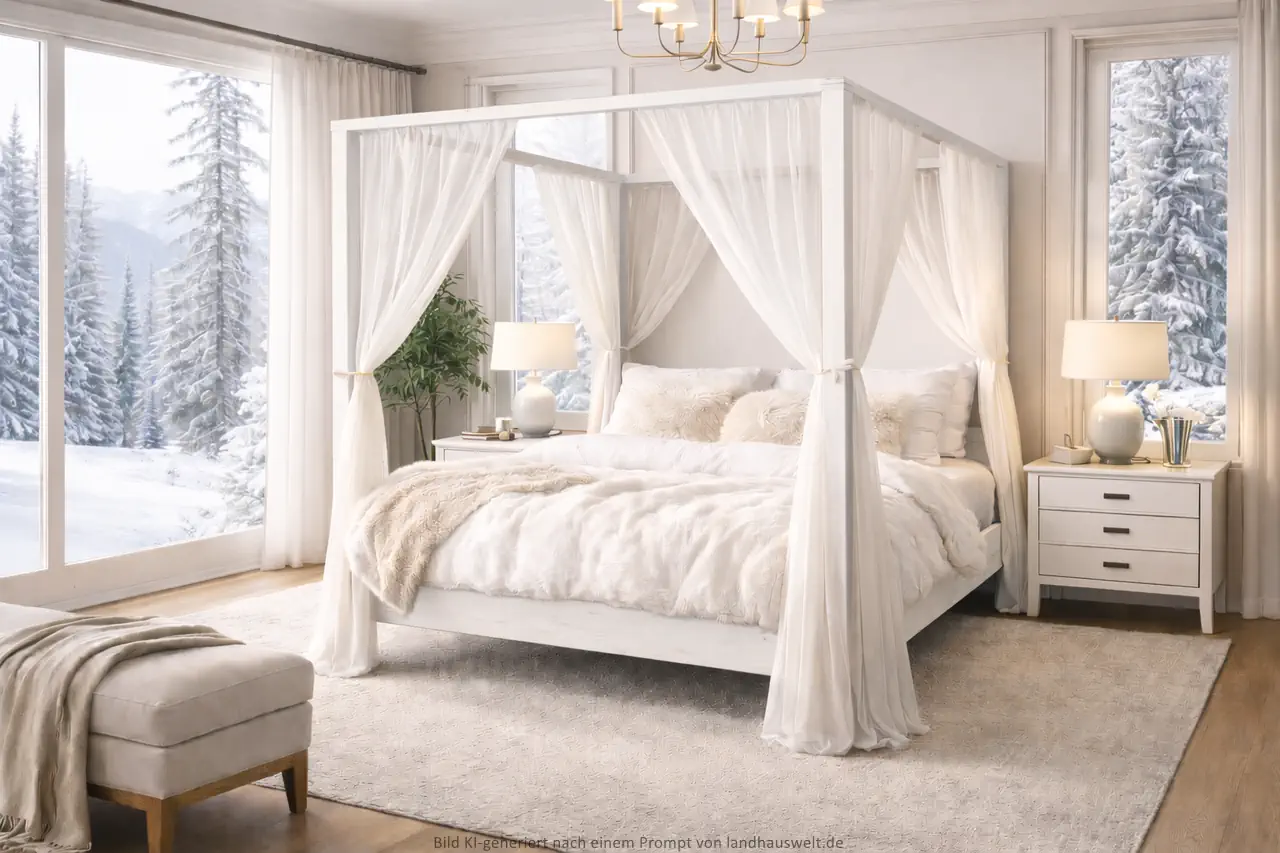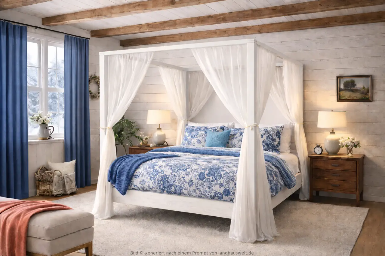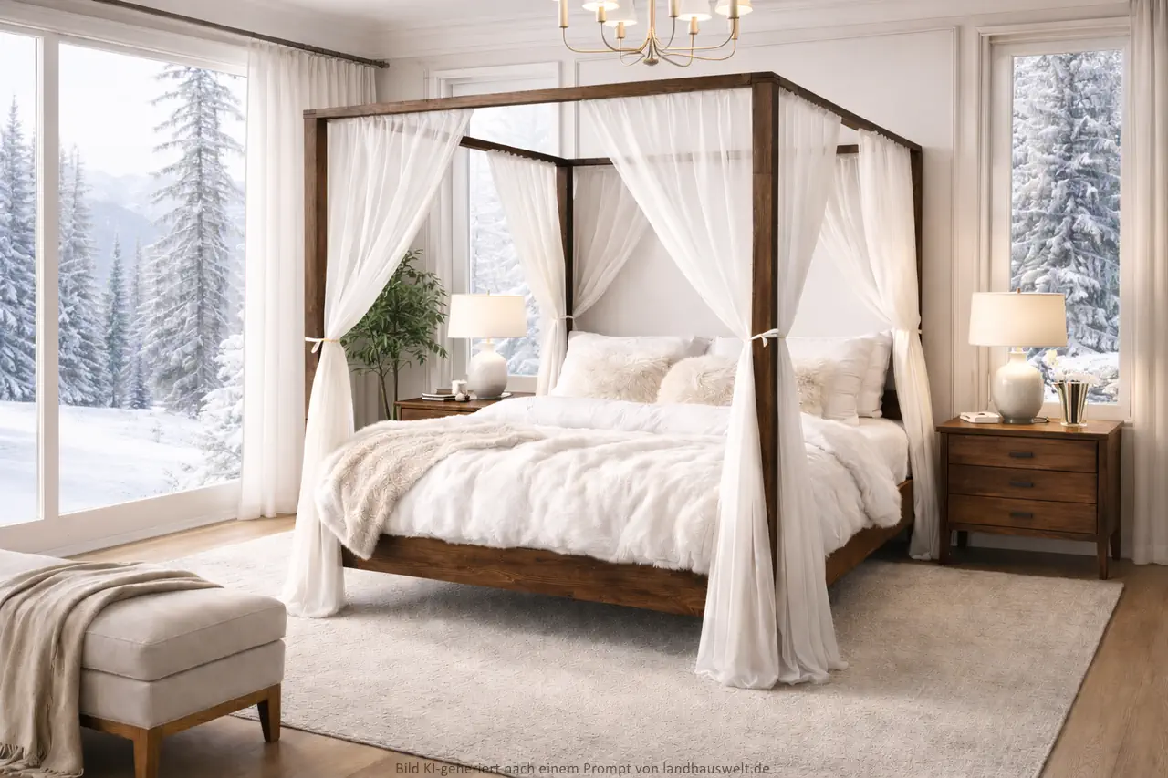 Himmelbett aus Massivholz im Landhausstil – zeitloses Baldachinbett für stilvolle Schlafzimmer