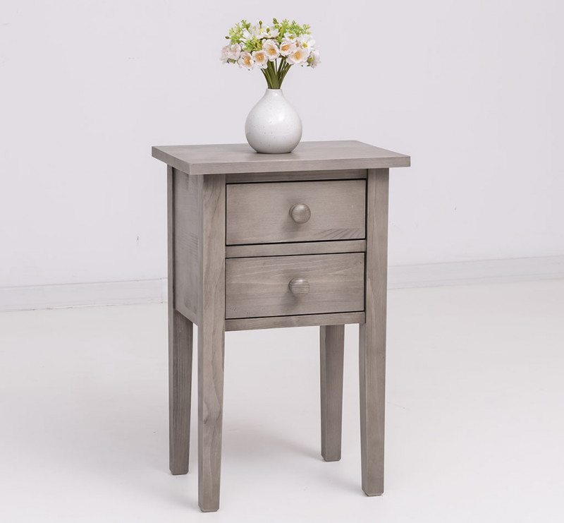 Dieses Nachtschränkchen auf 4 Beinen ist ein hübscher Blickfang mit 2 Schubladen.