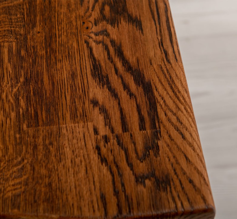 Oberfläche Natur unbehandelt oder besonders schadstoffarmes Möbelwachs und/oder umweltfreundlicher, wasserbasierter Lack, beide absolut wohnraumgeeignet. Eichenplatte zusätzlich auch geölt lieferbar.