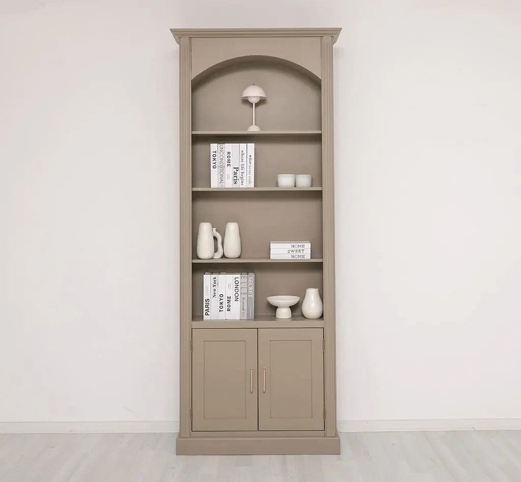 Die Bücherwand-Serie ARKADE steht für eine klare, architektonisch geprägte Gestaltung und eine durchdachte, modulare Konstruktion. Klassische Proportionen, die charakteristische Rundbogen-Architektur und die typischen Zahnleisten verbinden sich zu einem Regalschrank, der fest im traditionellen Landhausmöbelbau verankert ist und zugleich zeitlos wirkt.
