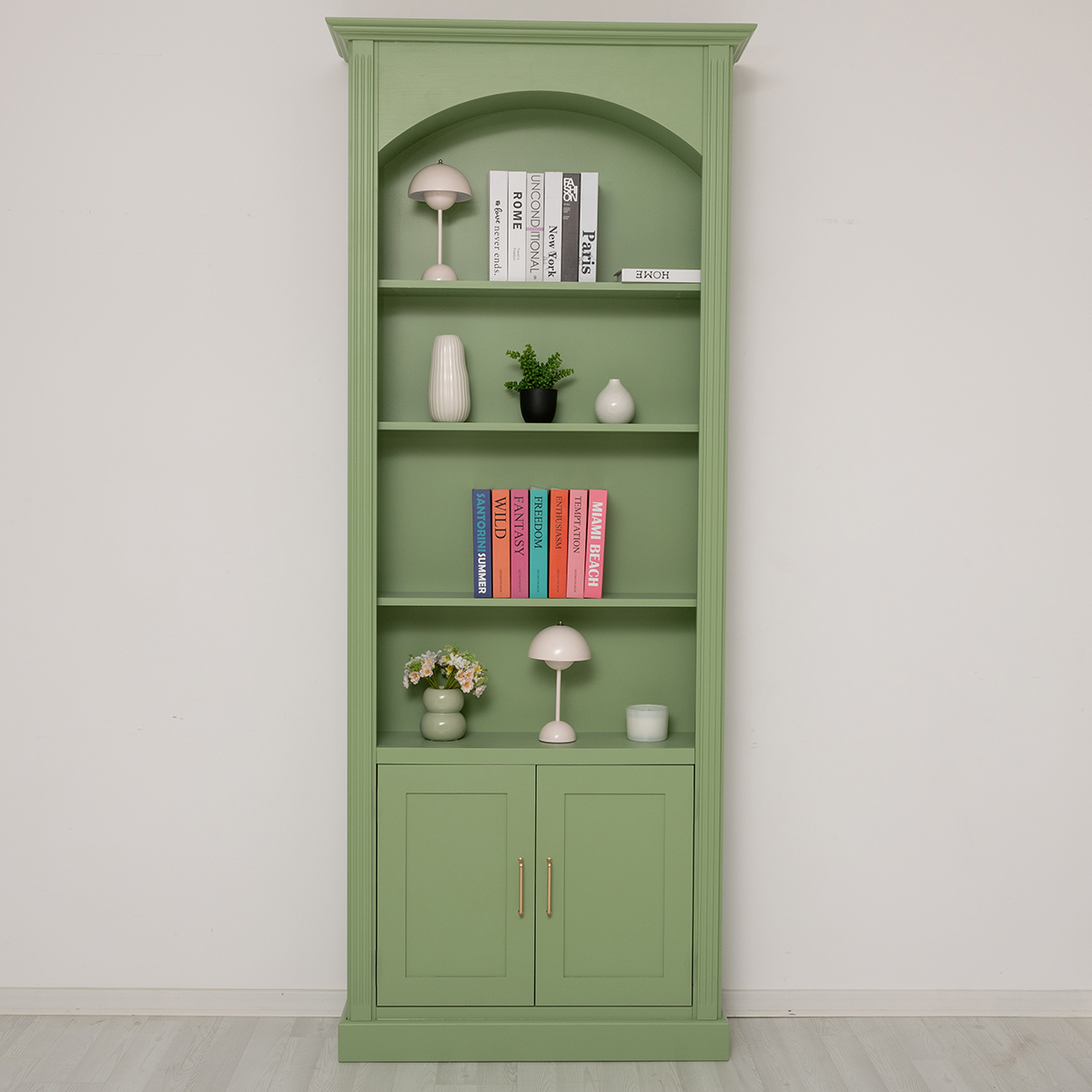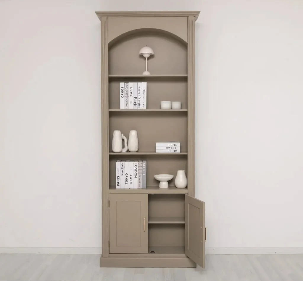 Die Bücherwand-Serie ARKADE steht für eine klare, architektonisch geprägte Gestaltung und eine durchdachte, modulare Konstruktion. Klassische Proportionen, die charakteristische Rundbogen-Architektur und die typischen Zahnleisten verbinden sich zu einem Regalschrank, der fest im traditionellen Landhausmöbelbau verankert ist und zugleich zeitlos wirkt.