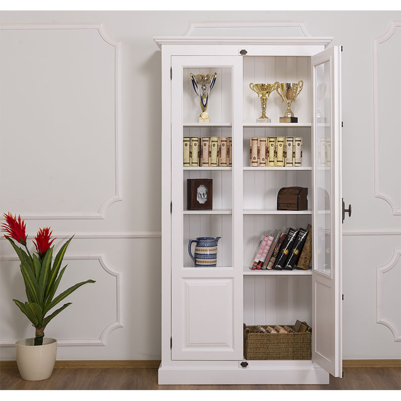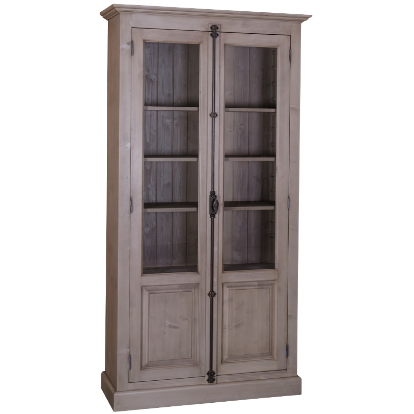 Dieser Bücherschrank ist ein Modell aus unserer Möbelserie „ENGLAND“ mit der Höhe 210 cm. Diese Möbel verbinden den traditionellen Landhaus-Stil mit einem besonderen Design-Akzent. Das auffallende Designelement bei diesem Schrank ist der außen auf den Türen montierte Schubstangenbeschlag. Der Beschlag ist typisch für antike Möbel aus England und macht diesen Schrank zu einem Hingucker in jedem Raum.