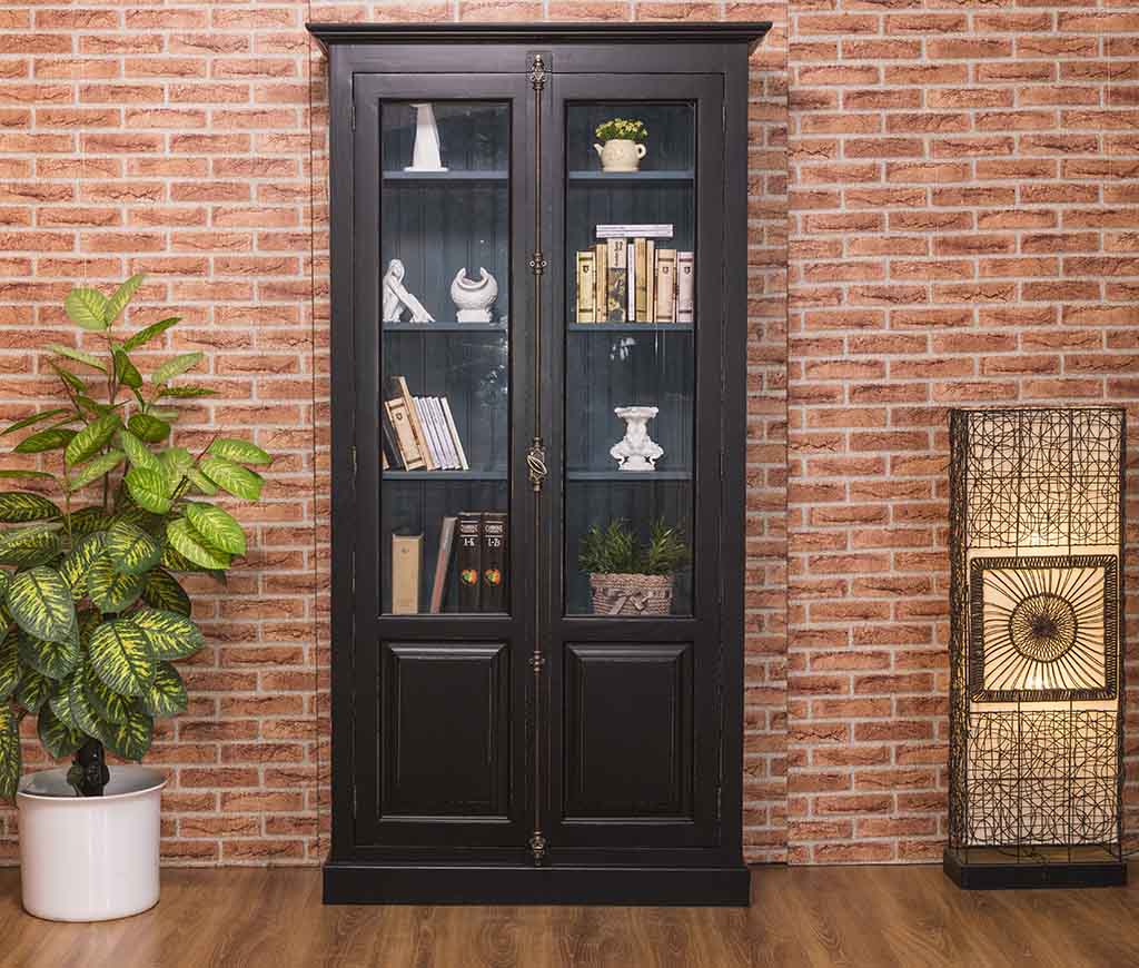 Dieser Bücherschrank ist in den Breiten 110 cm und 205 cm erhältlich. In der Breite 110 cm ist der Schrank auch als Vitrinenschrank mit Verglasung auf 3 Seiten lieferbar.
