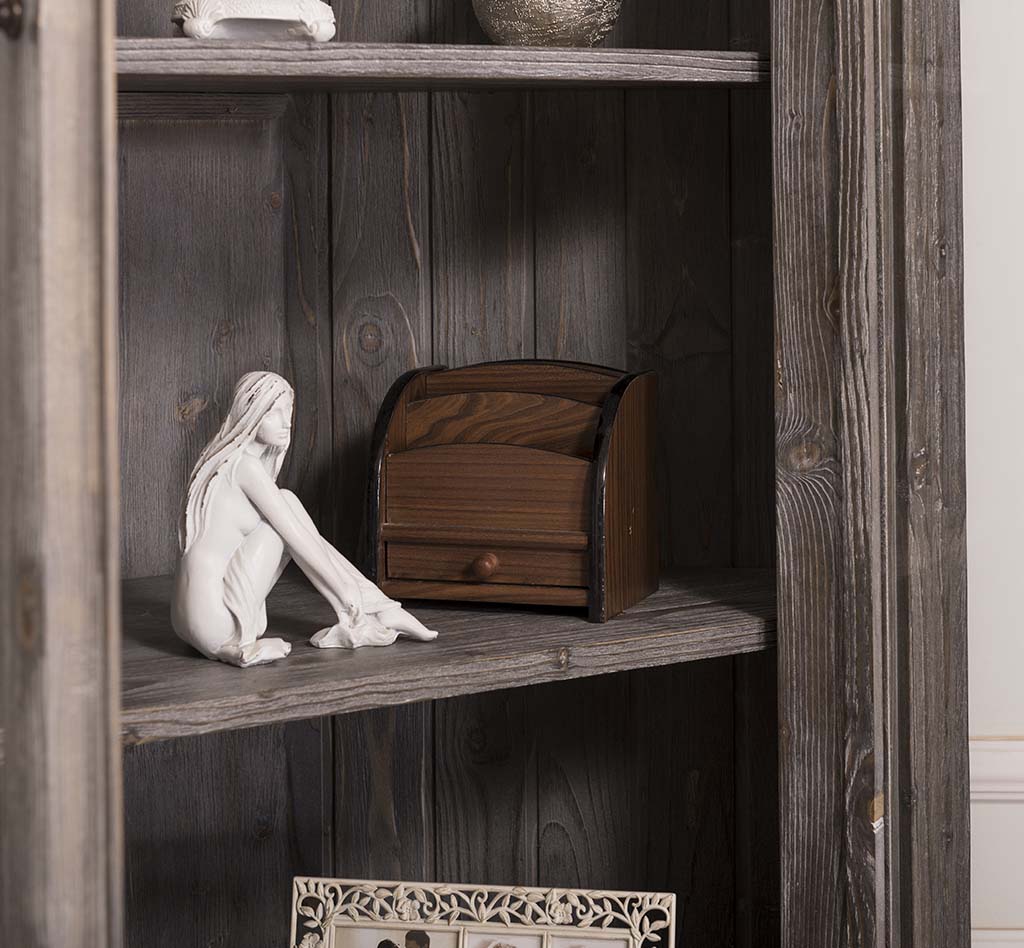 Drei feste Einlegeböden im Aufsatz sowie der Einlegeboden im Unterschrank liegen auf durchgehenden, stabilen Holzleisten auf. Diese traditionelle Konstruktionsweise sorgt für eine besonders hohe Belastbarkeit und unterstreicht die solide, handwerkliche Verarbeitung. Gleichzeitig verleiht sie dem Möbel eine authentische, langlebige Qualität, wie sie für unsere Massivholzmöbel charakteristisch ist.