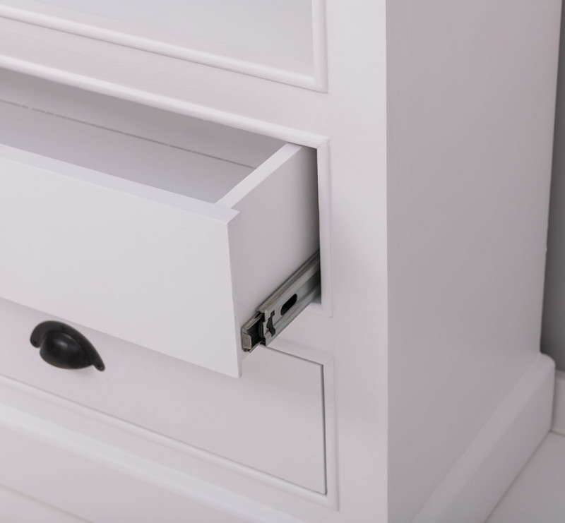 Die Schübe gleiten in der Standardausführung, wie bei Landhausmöbeln üblich, auf Laufleisten aus Holz („Holz auf Holz“). Gegen einen geringen Aufpreis können die Schubladen auch mit Metall-Schienenauszügen „Standard“ oder „Soft Close“ ausgerüstet werden.