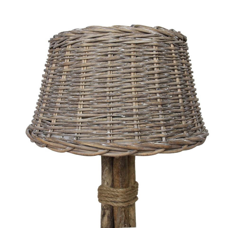 Hier haben wir eine weitere ganz besondere Tischleuchte für Sie ausgesucht. Sie ist mit Naturmaterialien gefertig: Der Lampenfuß ist mit Naturholz „Treibholz“ gestaltet. Mehrere Holzelemente sind mit Sisal zusammen gebunden. Der Lampenschirm besteht aus handgeflochtener Naturweide, die weiß gekälkt wurde.
