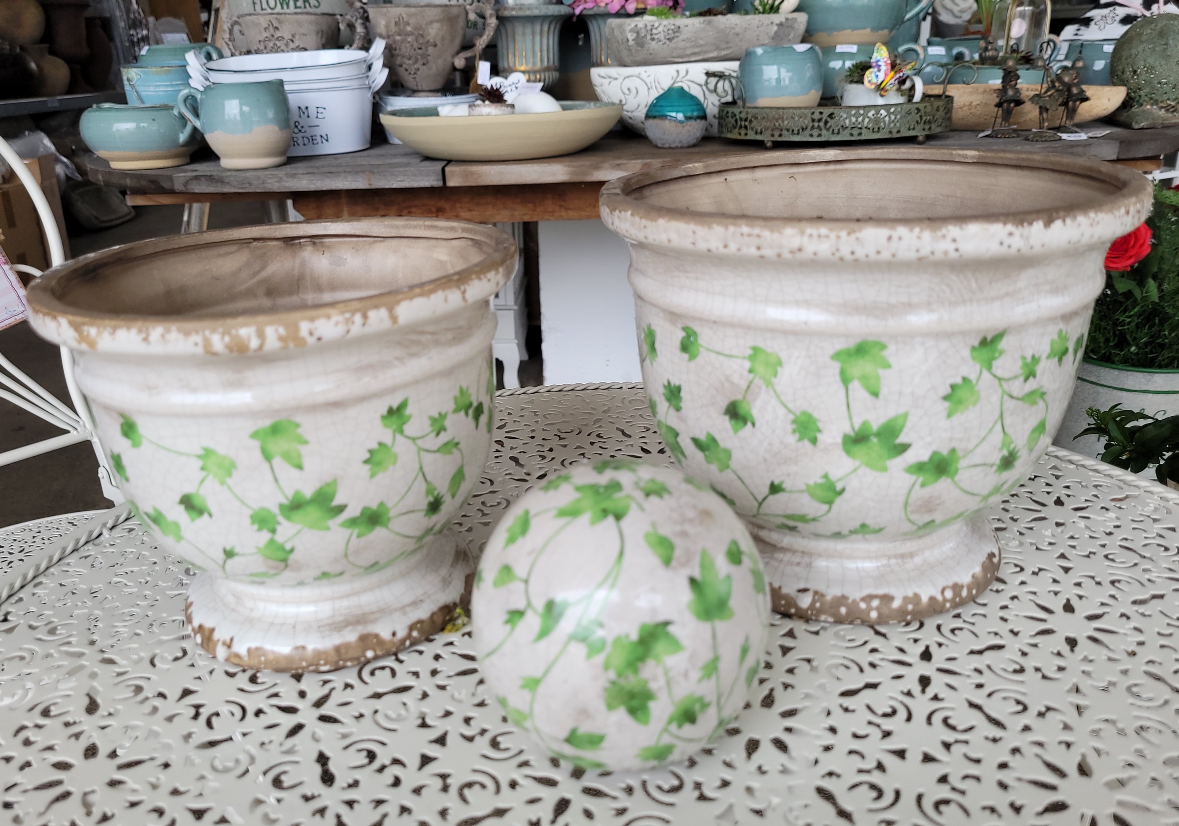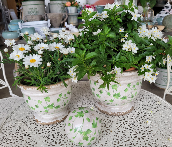 Nostalgischer Übertopf aus Keramik mit zartem floralen Muster in 2 Größen